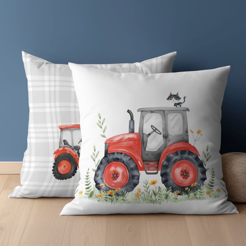 Povlak na polštářek Traktor červený je vyroben ze 100% bavlny. Povlak na polštář Traktor červený má z každé strany odlišný potisk. Povlak na polštář Traktor červený v rozměru 40x40cm. Povlak na polštářek Traktor červený se zapínáním na zip.
