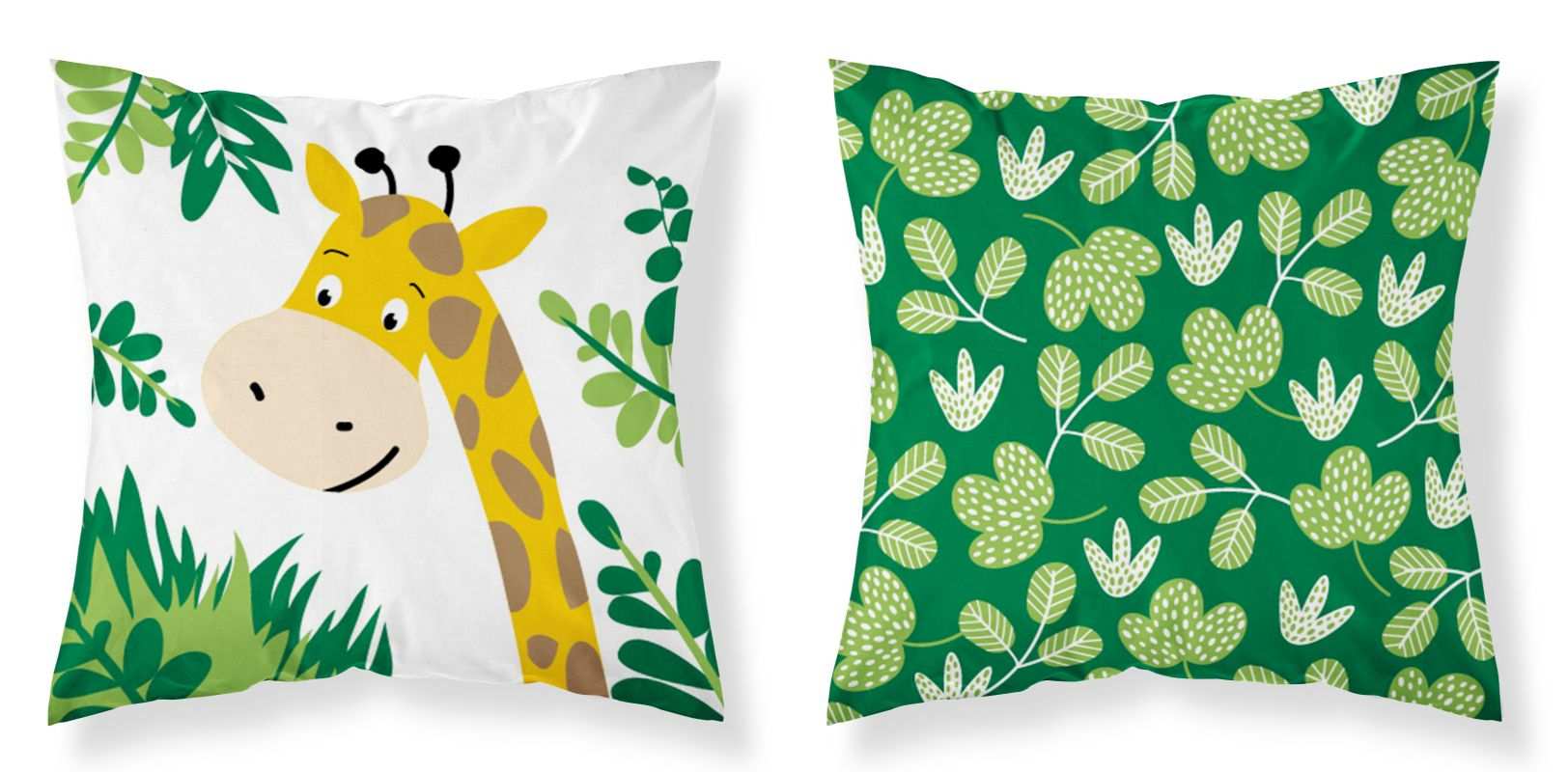 Povlak na polštářek Džungle green je vyroben ze 100% bavlny. Povlak na polštář Džungle green má z každé strany odlišný potisk. Povlak na polštář Džungle green v rozměru 40x40cm. Povlak na polštářek Džungle green se zapínáním na zip.