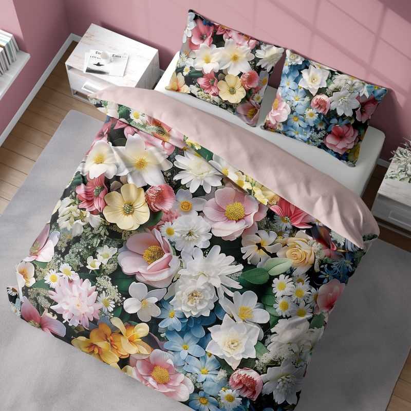 DL-535500 Francouzské povlečení 3D Letní květy růžová micro 220/200, 2x70/80 |