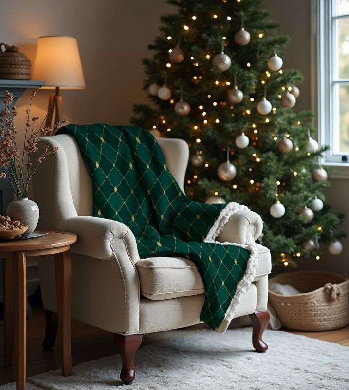 FA-561518 Fleece deka s beránkem kostičky červenozelená 150/200 |