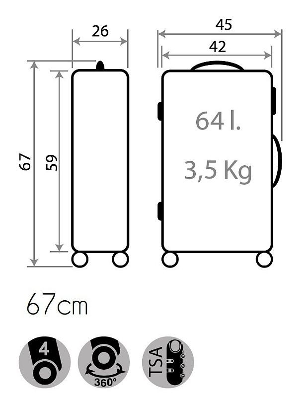 Cestovní kufr Santoro Gorjuss je luxusní plastový kufr. Cestovní kufr ABS Santoro Gorjuss For my love 67 cm je vyroben z pevného a odolného ABS plastu. Cestovní kufr ABS Santoro Gorjuss For my love má 4 otočná kolečka, boční madlo a teleskopickou rukojeť. Cestovní kufr ABS Santoro Gorjuss For my love s integrovaným TSA zámkem na číselný kód. Cestovní kufr ABS Santoro Gorjuss For my love má rozměry 67x45x26 cm a objem 64l.