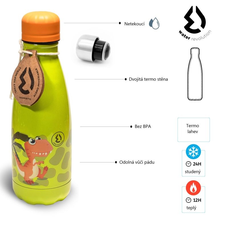 Úvod » Pro děti » Sportovní doplňky » Dětská nerezová Termo láhev na pití Dino 350 ml